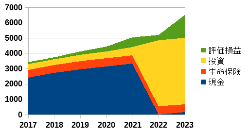 投資の評価損益ではわずかに前月よりマイナスになりましたが、会社のボーナスで今月反映された分があり、資産合計ではプラスになりました。